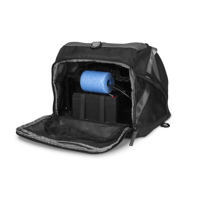 A GT8HW-IF high-wide CHIRP ice-fishing transducer for Garmin CHIRP traditional sonar. It also includes a rugged glove-friendly case that protects 4 5 6 or 7 STRIKER fishfinder echoMAP CHIRP or ECHOMAP Plus combo. This ice fishing kit comes complete with a rugged glove-friendly carrying bag to protect your device a GT8HW-IF high wide CHIRP ice fishing transducer for Garmin CHIRP traditional sonar plus foam float grommet battery charger power cable and built-in cable management and storage.